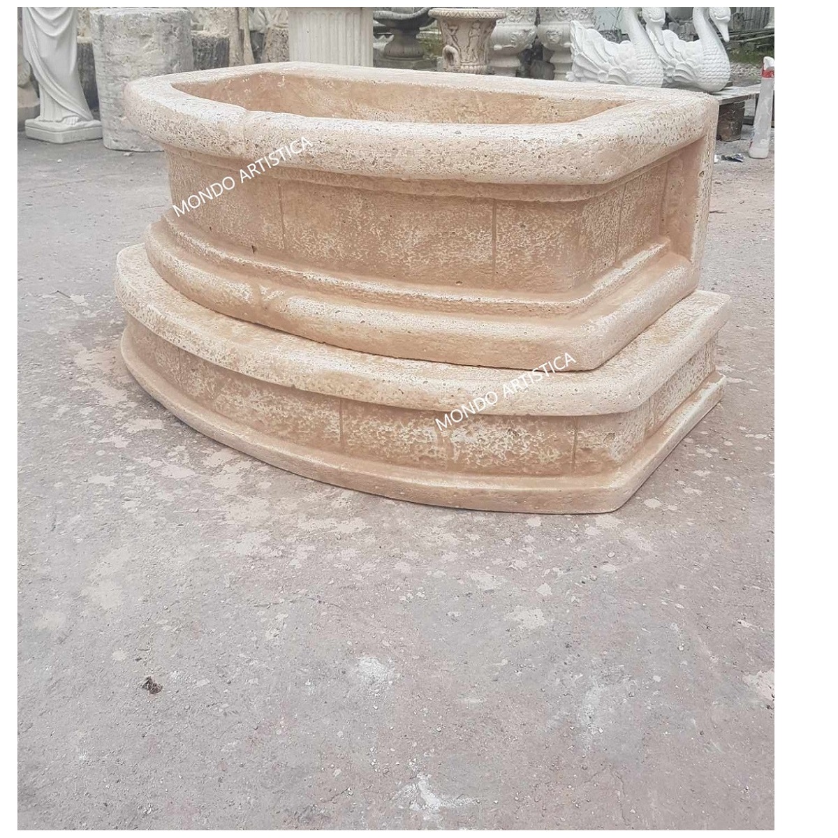 La gamma degli articoli prodotti è vasta: vasi, statue, fontane, lavandini, colonne, capitelli, balaustre ed ancora bassorilievi, busti, bordi per piscina, cornici personalizzate ed altro ancora. Mondo Artistica si distingue per la qualità di tutta la propria produzione, i nostri prodotti hanno un’ ineguagliabile compattezza e resistenza a qualsiasi fenomeno atmosferico. Abbiamo aperto il nostro e-commerce per espanderci in tutta Italia e in tutto il Mondo. Possiamo spedire i nostri prodotti in ogni parte d’ Italia, grazie ad un particolare imballaggio su pallet che ne salvaguarda l’integrità durante il trasporto. Con soddisfazione affermiamo che i nostri prodotti sono manufatti artigianali tipicamente italiani che i nostri clienti apprezzano per la loro qualità.