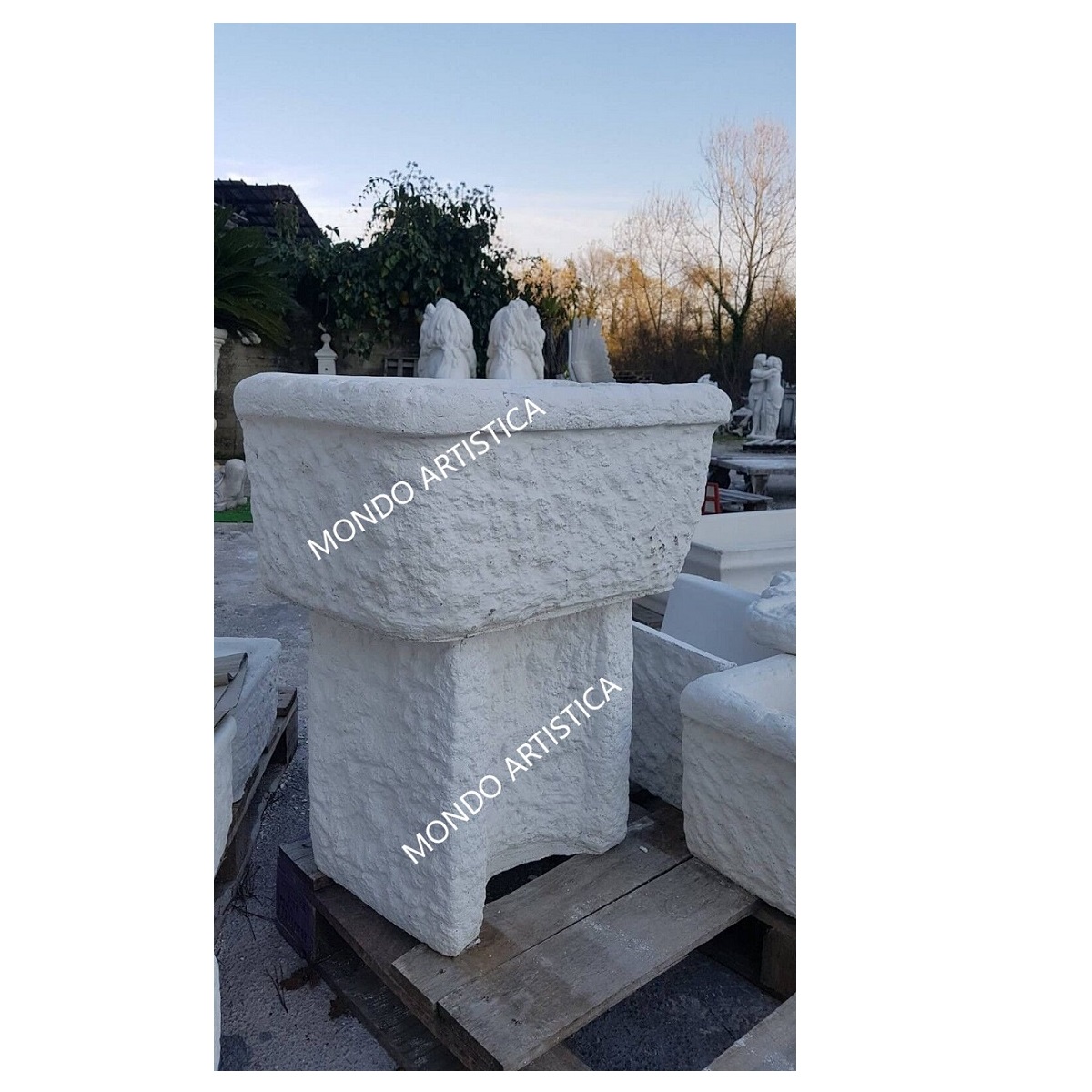 Tutta la nostra merce è imballata su bancale in legno e viaggia assicurata.Il nostro corriere verra’ attrezzato di sponda idraulica per lo scarico del bancale e non effettua consegne ai piani superiori, lo scarico della merce avviene al piano strada o terra se c’è possibilita’ di transitare con il mezzo o con carrello transpallet in assenza di ghiaia e gradini.Mondo artistica srl produzione e lavorazione di manufatti artistici dal 1987.