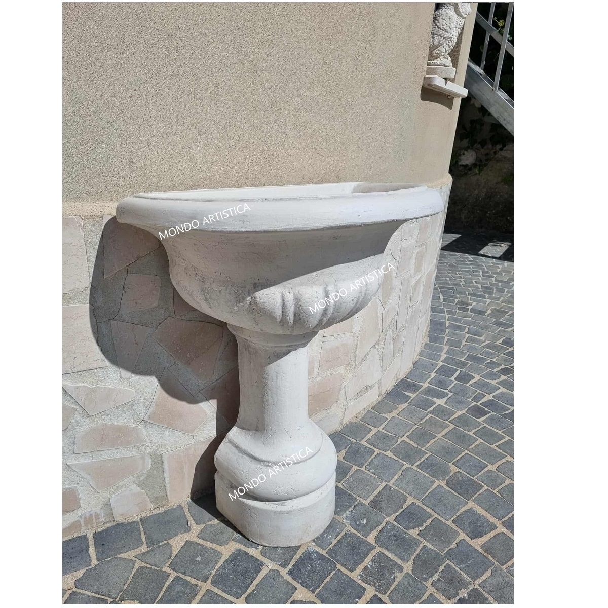 La gamma degli articoli prodotti è vasta: vasi, statue, fontane, lavandini, colonne, capitelli, balaustre ed ancora bassorilievi, busti, bordi per piscina, cornici personalizzate ed altro ancora. Mondo Artistica si distingue per la qualità di tutta la propria produzione, i nostri prodotti hanno un’ ineguagliabile compattezza e resistenza a qualsiasi fenomeno atmosferico. Abbiamo aperto il nostro e-commerce per espanderci in tutta Italia e in tutto il Mondo. Possiamo spedire i nostri prodotti in ogni parte d’ Italia, grazie ad un particolare imballaggio su pallet che ne salvaguarda l’integrità durante il trasporto. Con soddisfazione affermiamo che i nostri prodotti sono manufatti artigianali tipicamente italiani che i nostri clienti apprezzano per la loro qualità.