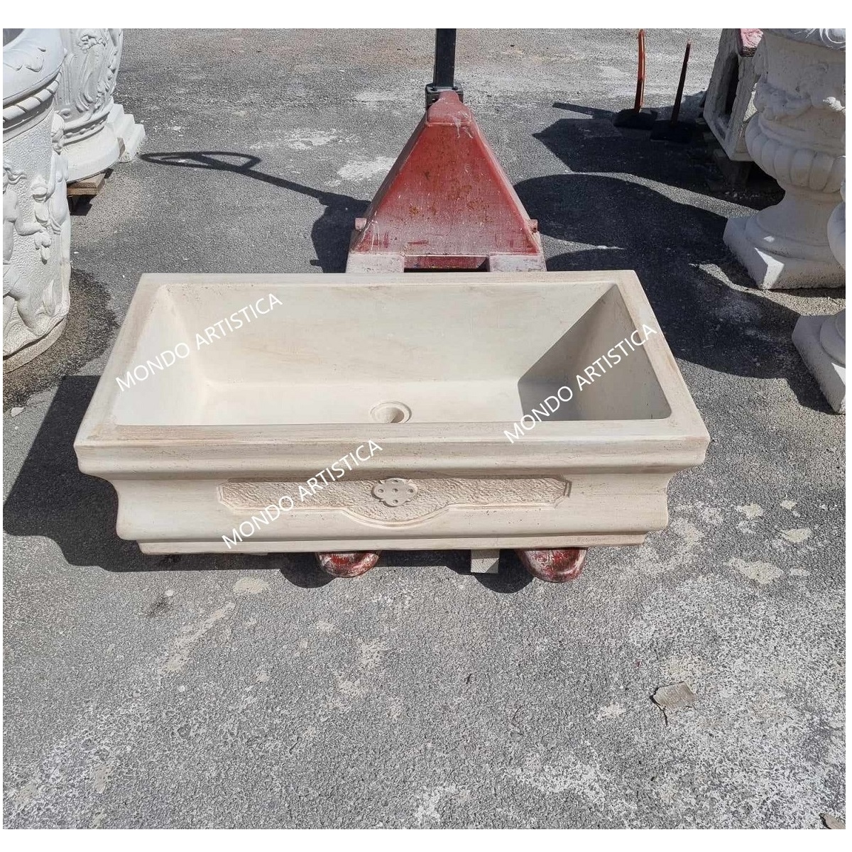 Tutta la nostra merce è imballata su bancale in legno e viaggia assicurata.Il nostro corriere verra’ attrezzato di sponda idraulica per lo scarico del bancale e non effettua consegne ai piani superiori, lo scarico della merce avviene al piano strada o terra se c’è possibilita’ di transitare con il mezzo o con carrello transpallet in assenza di ghiaia e gradini.Mondo artistica srl produzione e lavorazione di manufatti artistici dal 1987.