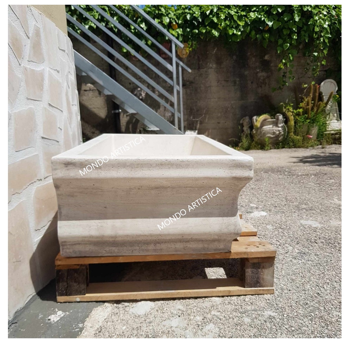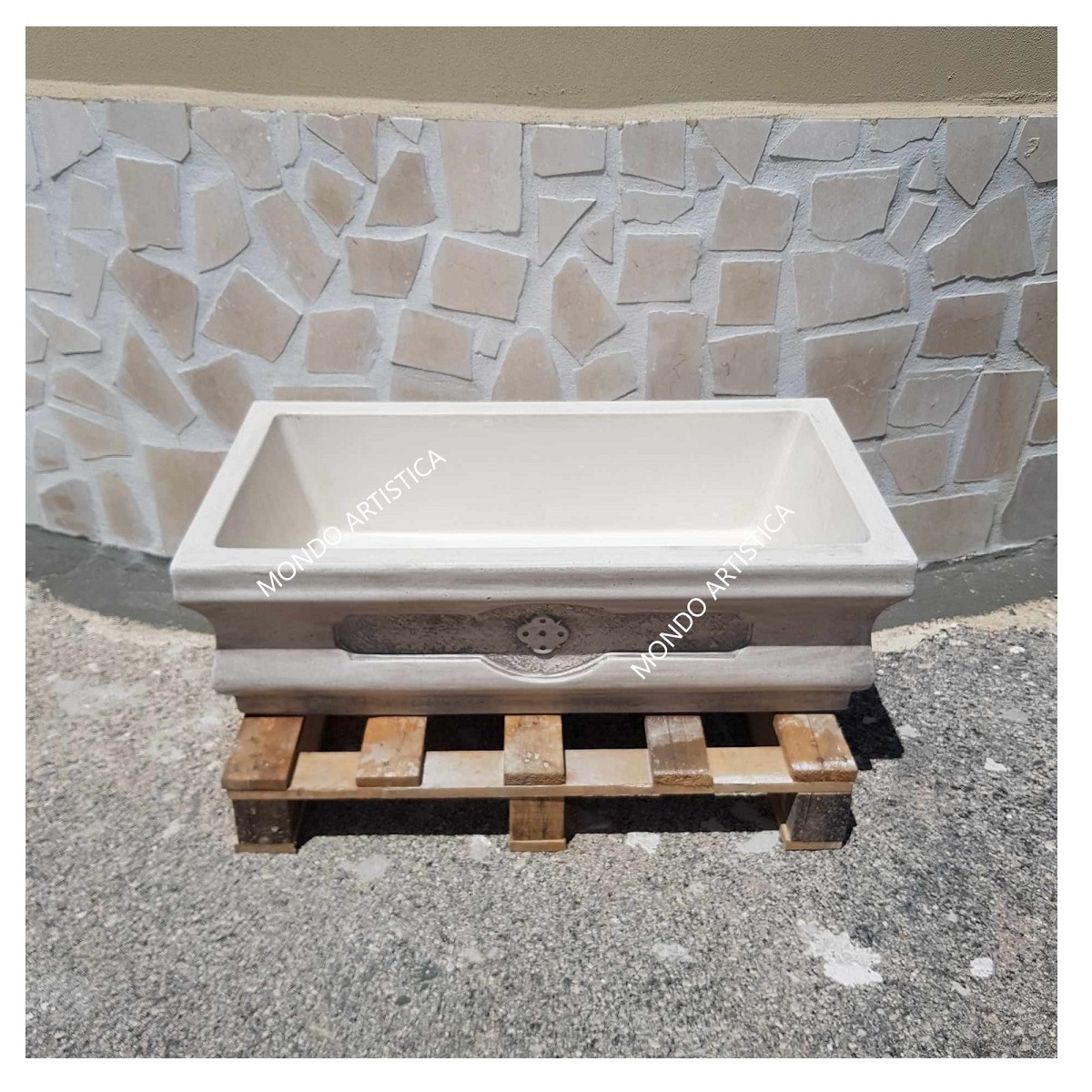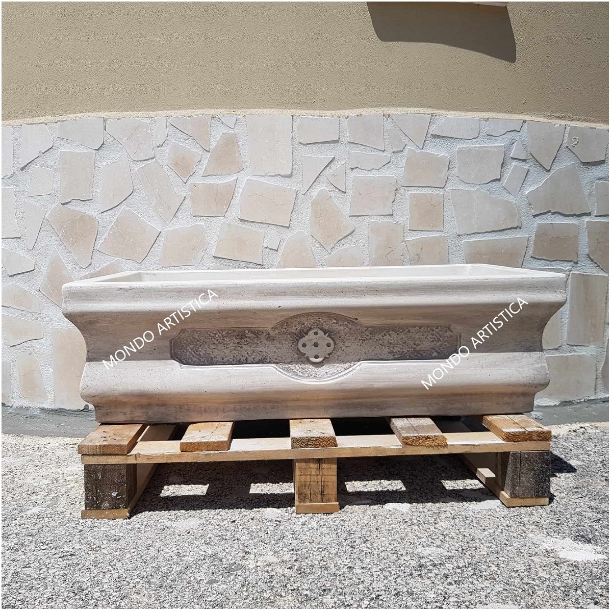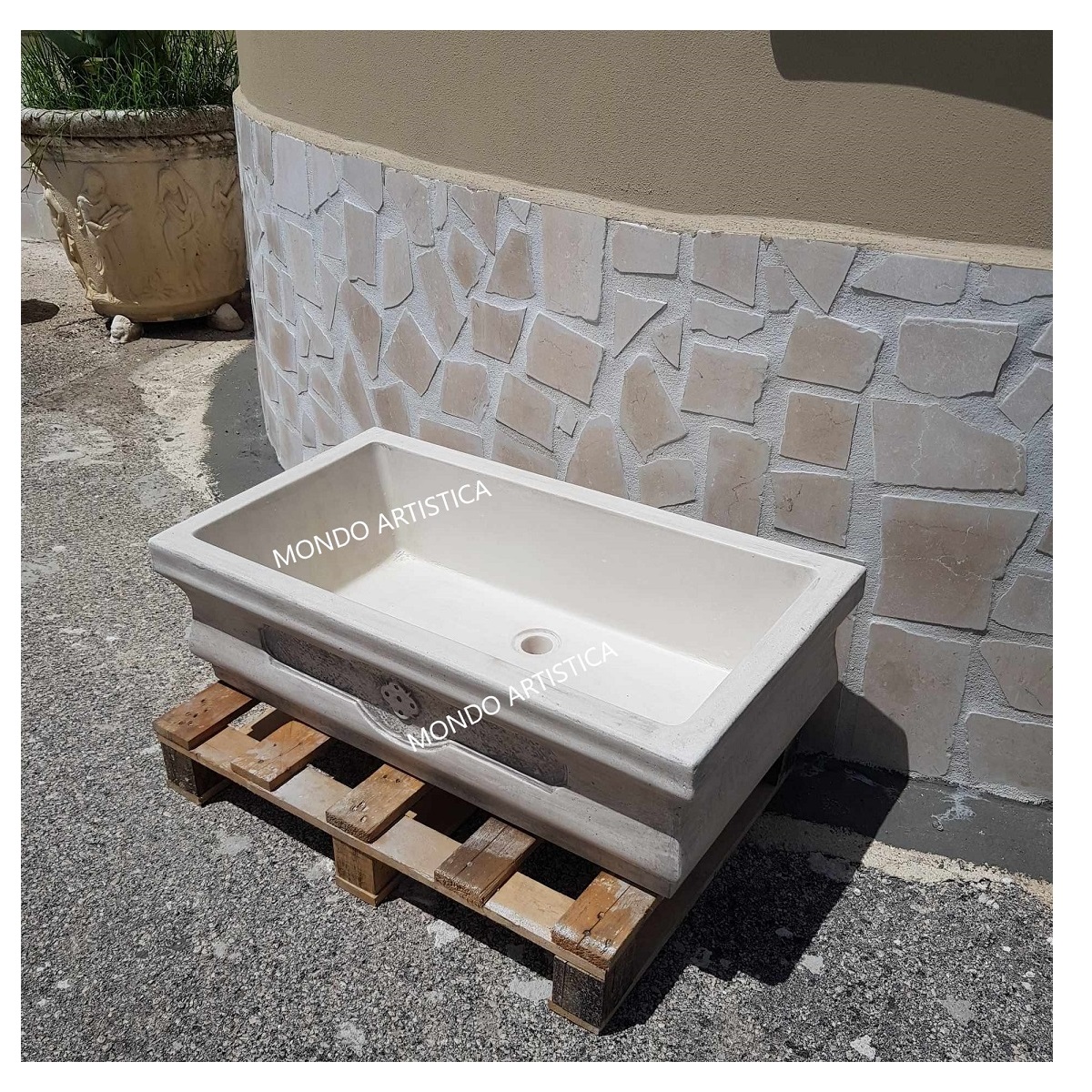 Tutta la nostra merce è imballata su bancale in legno e viaggia assicurata.Il nostro corriere verra’ attrezzato di sponda idraulica per lo scarico del bancale e non effettua consegne ai piani superiori, lo scarico della merce avviene al piano strada o terra se c’è possibilita’ di transitare con il mezzo o con carrello transpallet in assenza di ghiaia e gradini.Mondo artistica srl produzione e lavorazione di manufatti artistici dal 1987.