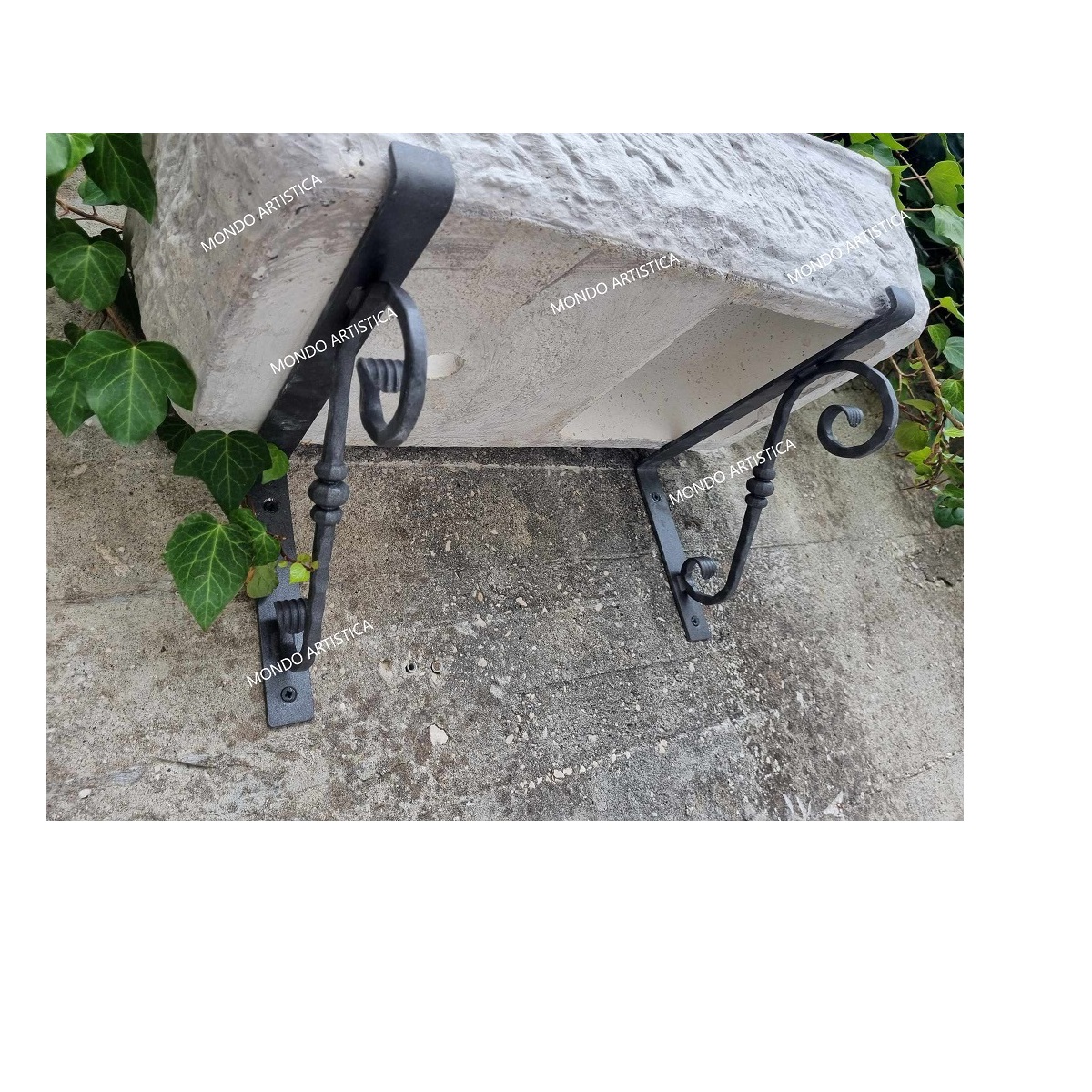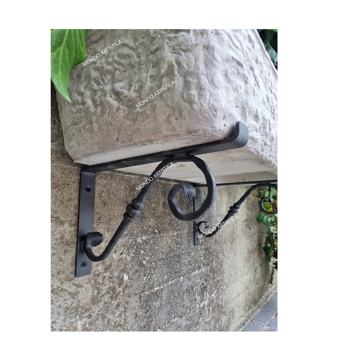 - Composizione staffe: ferro battuto pieno, dotate di fori per l’ancoraggio (fisher e viti non incluse).