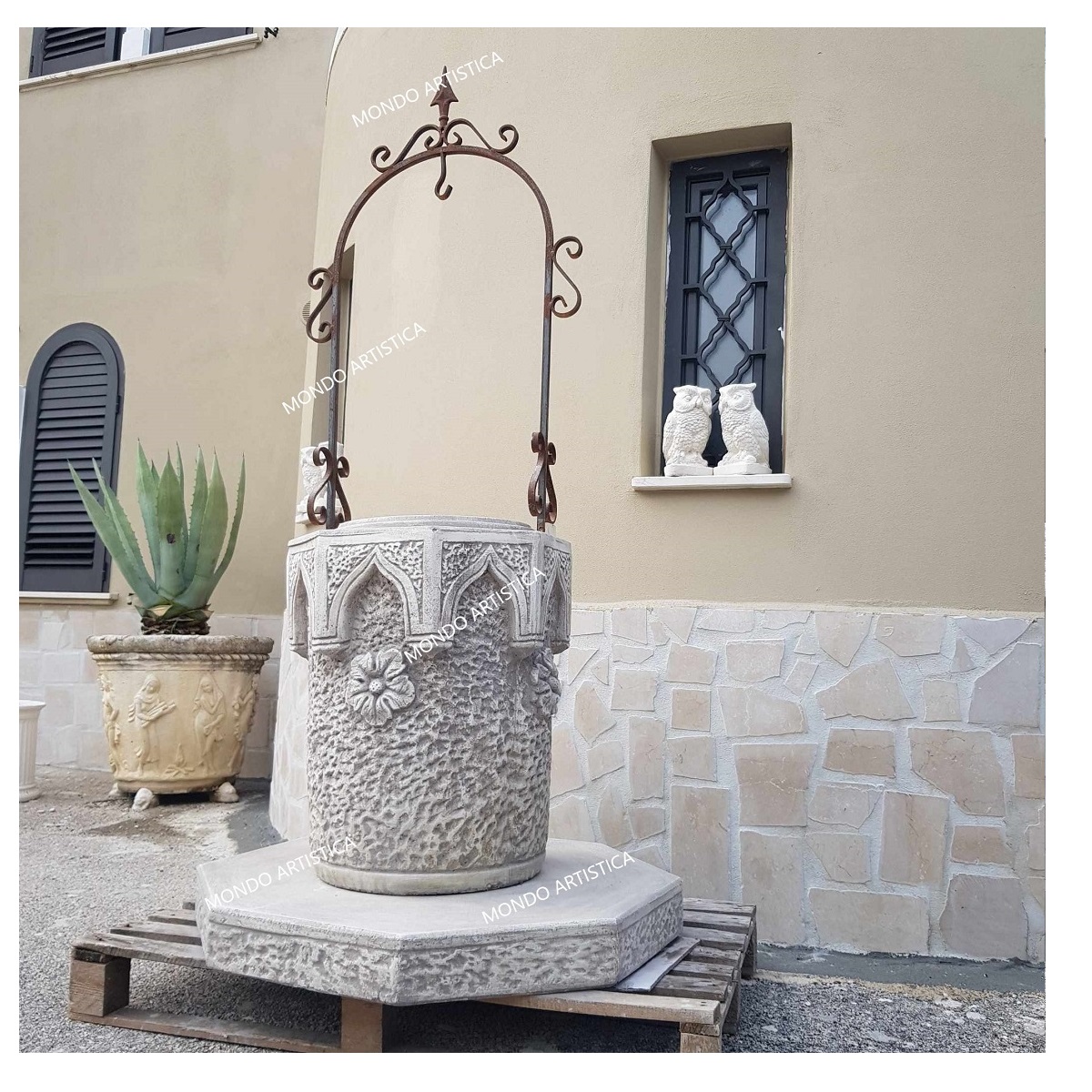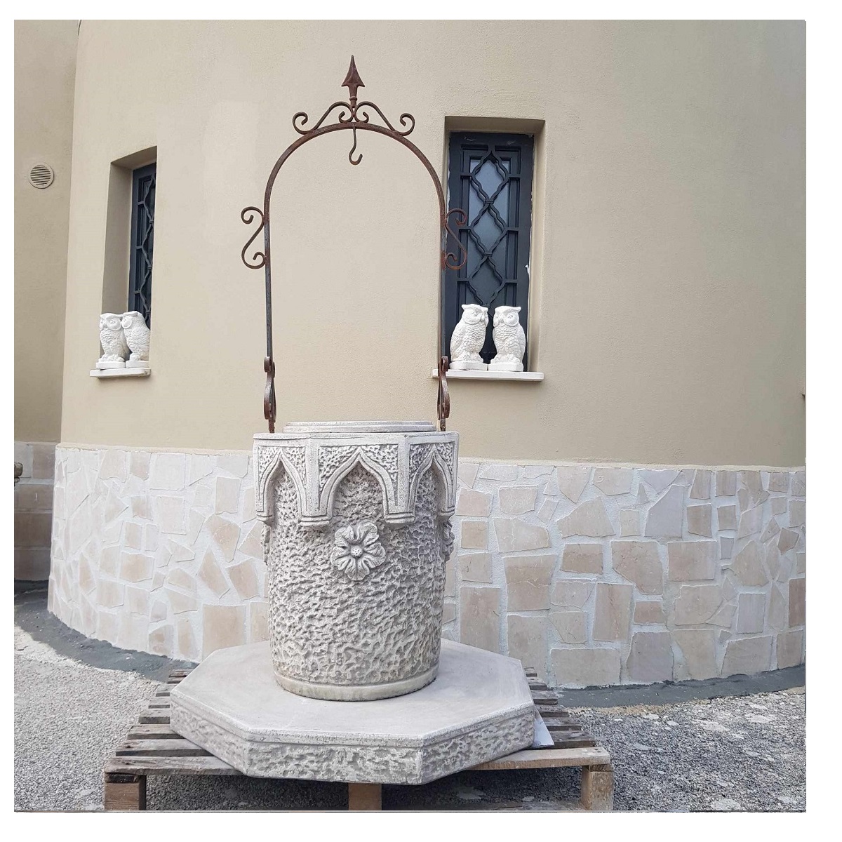 - Composizione 4 pezzi: n° 1 base (ruota) – n° 1 pozzo – n° 1 coperchio – n° 1 arco in ferro verniciato.