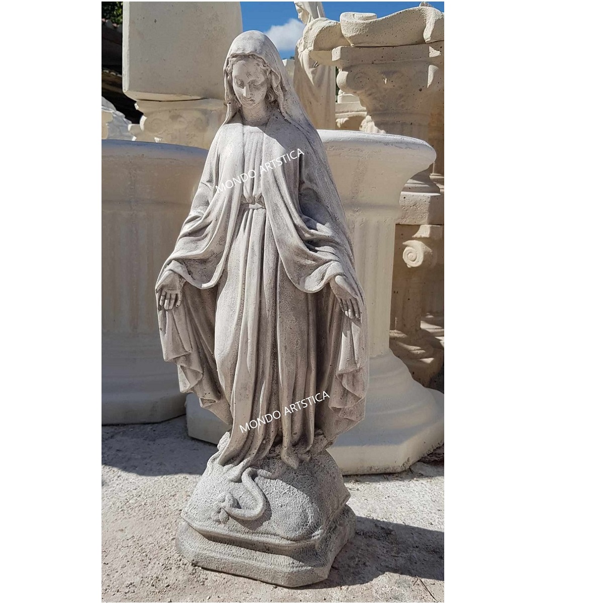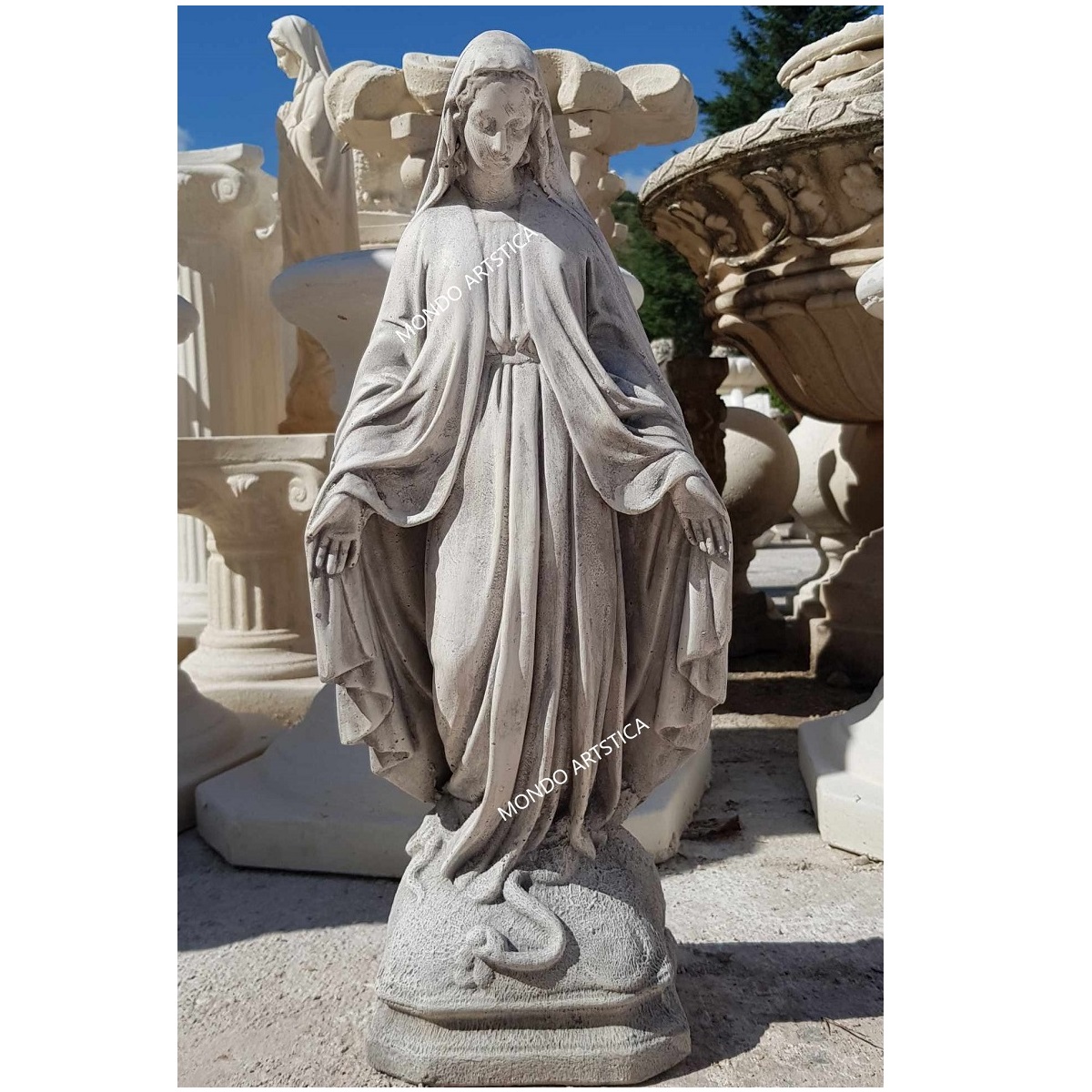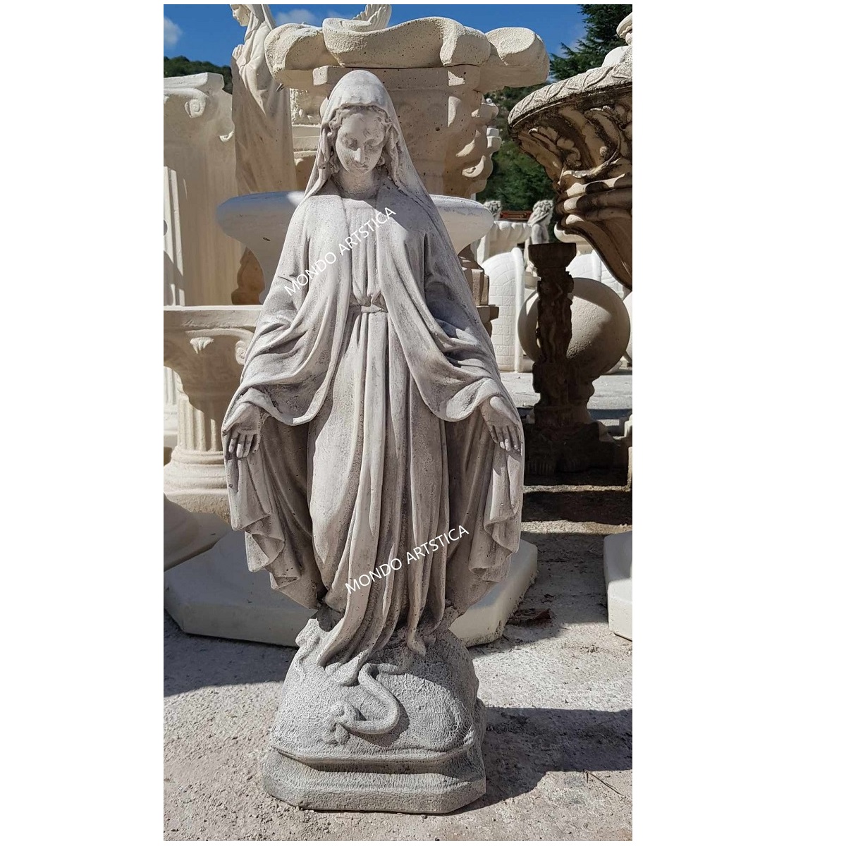 La gamma degli articoli prodotti è vasta: vasi, statue, fontane, lavandini, colonne, capitelli, balaustre ed ancora bassorilievi, busti, bordi per piscina, cornici personalizzate ed altro ancora. Mondo Artistica si distingue per la qualità di tutta la propria produzione, i nostri prodotti hanno un’ ineguagliabile compattezza e resistenza a qualsiasi fenomeno atmosferico. Abbiamo aperto il nostro e-commerce per espanderci in tutta Italia e in tutto il Mondo. Possiamo spedire i nostri prodotti in ogni parte d’ Italia, grazie ad un particolare imballaggio su pallet che ne salvaguarda l’integrità durante il trasporto. Con soddisfazione affermiamo che i nostri prodotti sono manufatti artigianali tipicamente italiani che i nostri clienti apprezzano per la loro qualità.